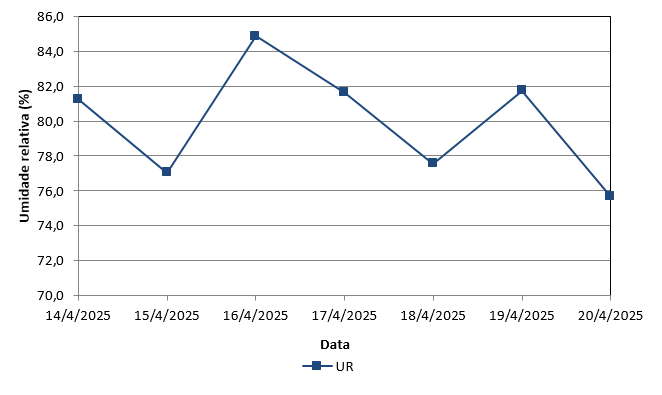 Apresentam-se os dados meteorológicos referentes à terceira semana do mês de Abril de 2025