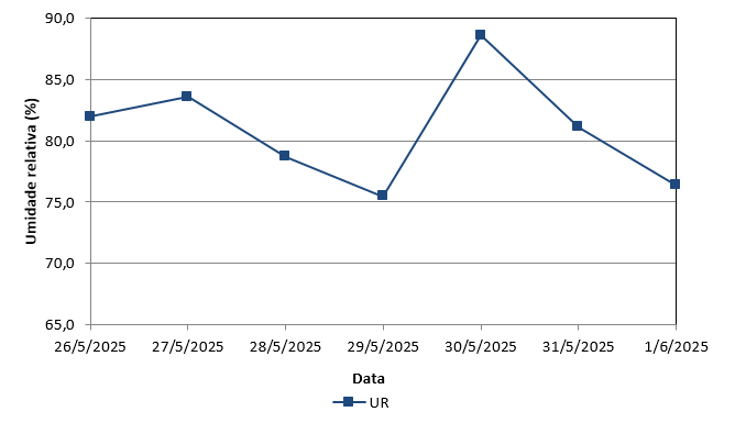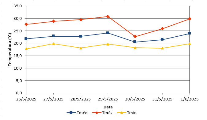 Apresentam-se os dados meteorológicos referentes à quarta semana do mês de Maio de 2025