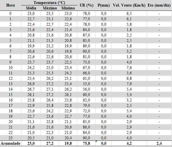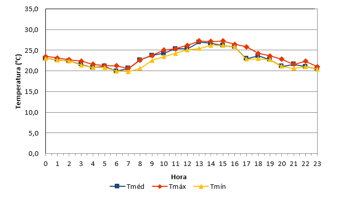 - Temperatura média: 23,0°C