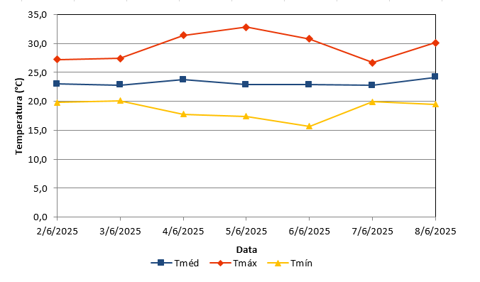 Apresentam-se os dados meteorológicos referentes à primeira semana do mês de Junho de 2025