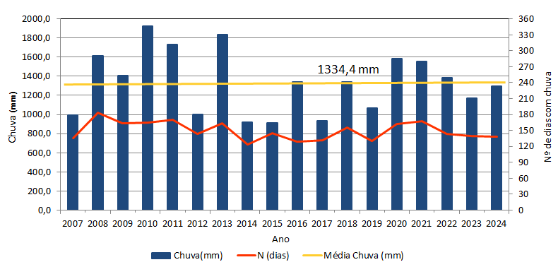 A série histórica apresentada a seguir compreende o período de 01/01/2007 a 31/12/2024, totalizando 18 anos de dados.
