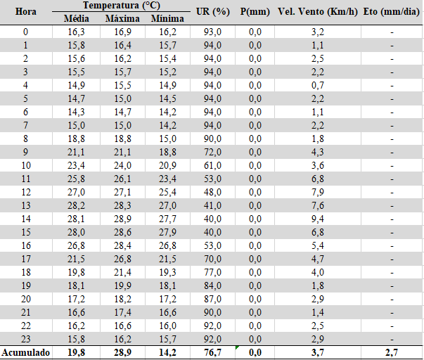 - Chuva acumulada: 0,0 mm