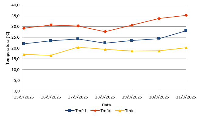 Apresentam-se os dados meteorológicos referentes à terceira semana do mês de Setembro de 2025