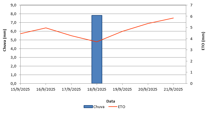 - Evapotranspiração potencial acumulada: 33,2 mm