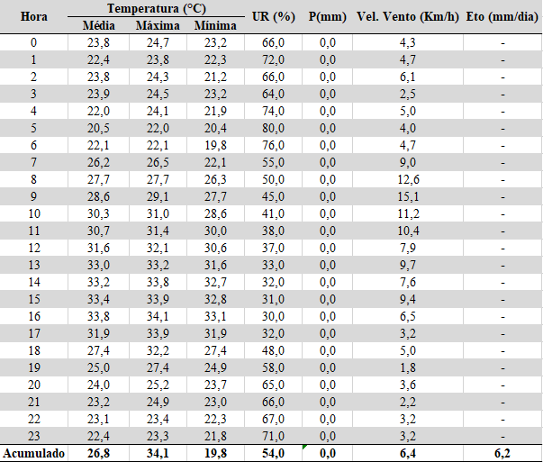 - Chuva acumulada: 0,0 mm