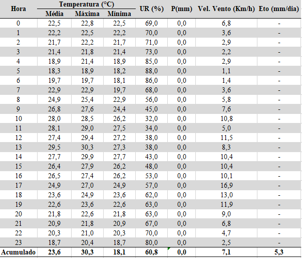 - Chuva acumulada: 0,0 mm