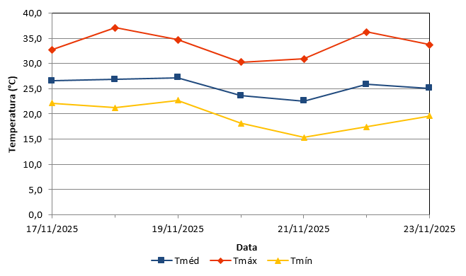 Apresentam-se os dados meteorológicos referentes à terceira semana do mês de Novembro de 2025