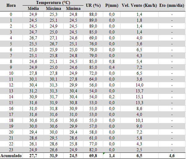 - Chuva acumulada: 1,4 mm
