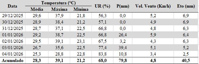 - Evapotranspiração potencial acumulada: 40,5 mm