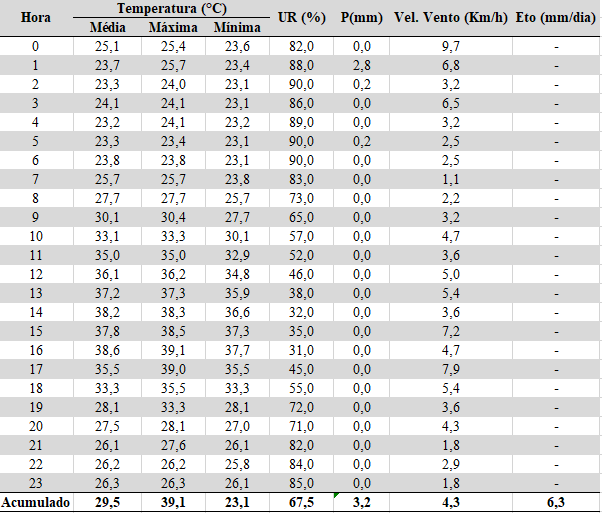 - Chuva acumulada: 3,2 mm
