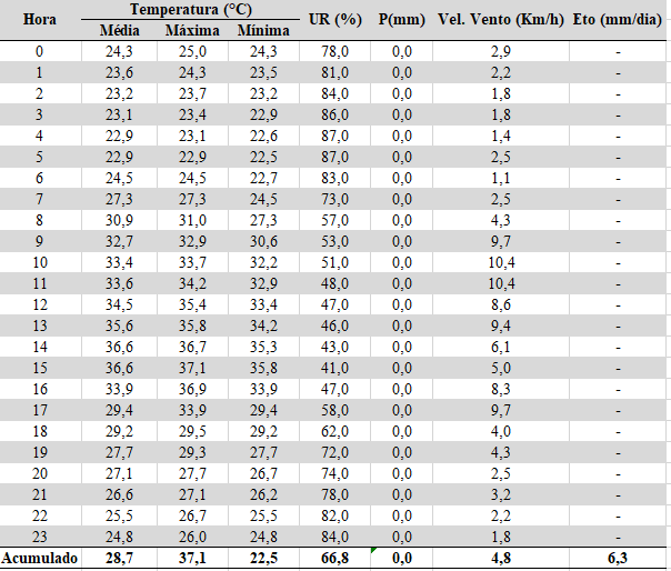 - Chuva acumulada: 0,0 mm