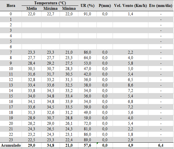 - Chuva acumulada: 0,0 mm