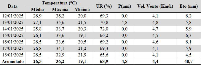 - Evapotranspiração potencial acumulada: 40,7 mm