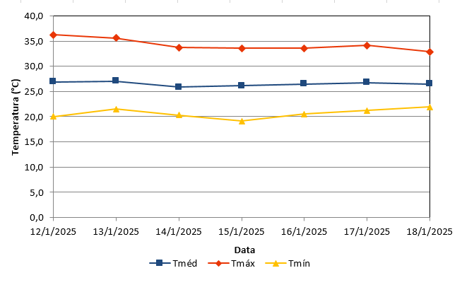 Apresentam-se os dados meteorológicos referentes à segunda semana do mês de Janeiro de 2026.