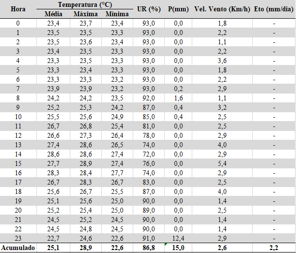 - Temperatura média: 25,1°C