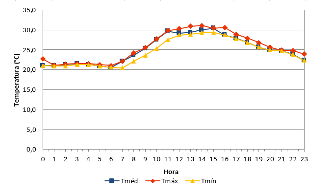 - Temperatura média: 25,0°C