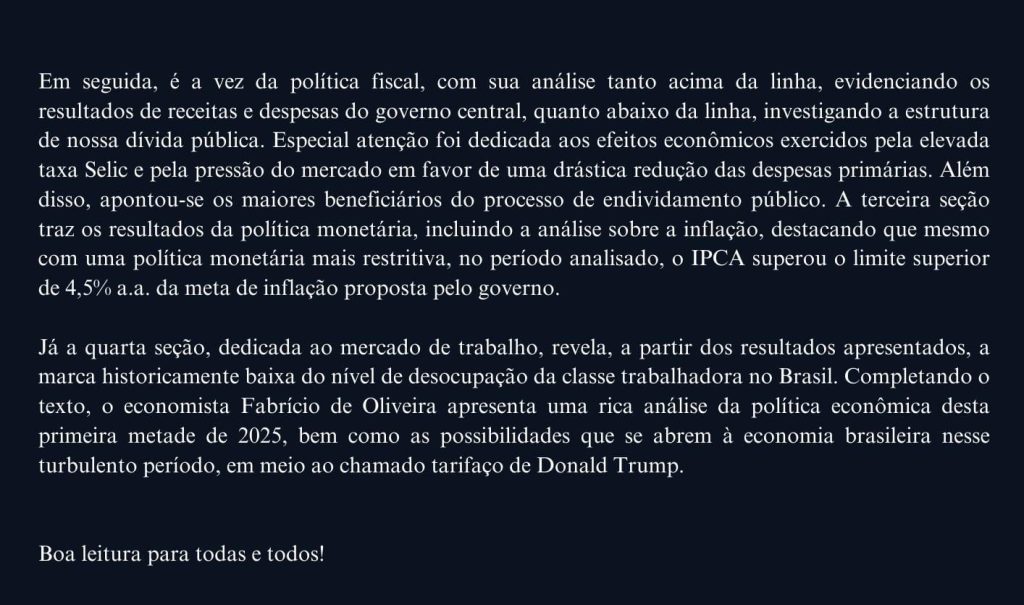 Boletim 72° – A economia brasileira no fio da navalhaPor Paulo Henrique Bruno da Silva / 22 de agosto de 2025 Texto completo - Boletim 72º
