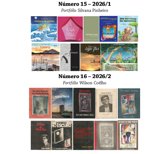 - Para a seção Portfólio, serão aceitos trabalhos de 12 a 30 páginas digitadas em espanhol, francês, inglês, italiano ou português. Só serão acatados para essa seção artigos inéditos sobre a obra de Mara Coradello (para o número 9) e de Bith/Wilberth Salgueiro (para o número 10), com autoria e/ou coautoria de pesquisadoras/es em diversos níveis de titulação: especialistas, mestrandas/os, mestras/es, doutorandas/os e doutoras/es. Graduandas/os e graduadas/os poderão submeter seu trabalho, desde que haja ao menos um/a coautor/a com um daqueles títulos.
